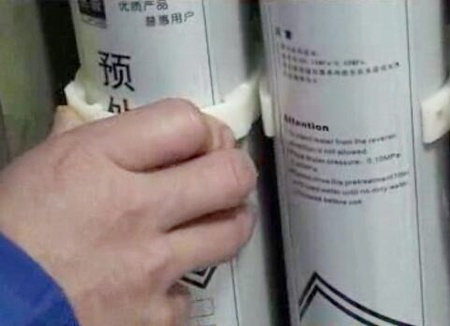 2.清潔壓力容器:用50%的甘油溶液浸濕軟布,將膜殼內壁擦洗干凈,可以防止污垢在膜元件外表面沉積。